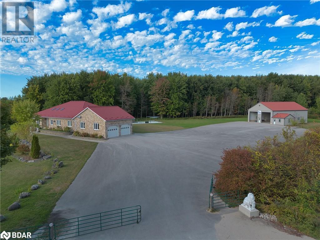 SELLER WILL CONSIDER VENDOR TAKE-BACK FINANCING UP TO 50% OF THE PURCHASE PRICE, FOR QUALIFIED PURCHASERS. This stunning estate spans nearly 50 acres, offering the perfect blend of space, privacy, and functionality for land lovers, large families, and truck owner/operators alike! This extraordinary custom-built bungalow is a masterpiece, featuring Shouldice Designer stone, geothermal heating, and radiant heated floors-ensuring year-round comfort and efficiency. Attention to detail shines through with custom cabinets, marble countertops, solid oak trim, and a lifetime steel roof, combining elegance with durability. The open concept layout, complete with cathedral ceilings and a luxurious ensuite bath, creates a welcoming atmosphere. Enjoy the convenience of main floor laundry and a fully finished basement apartment, with lavish epoxy flooring and stunning upgrades, perfect for rental income or extended family. The extra-wide garage with 15'x20' doors is equipped with geothermal heating, floor drains, and steel-covered walls, attached office and washroom, ideal for a home business or large hobbies. The expansive 1-foot deep paved driveway easily accommodates large trucks and trailers. Don't miss this exceptional opportunity! Enjoy a newly built composite terrace and gazebo, (pergola not incl) on a spacious concrete pad. Plus, you can lease 40 acres of land for soy farming for extra income of approximately $3,500. (id:45412)